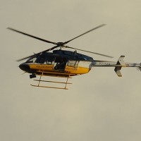 Helicóptero de la PM brasileña sobrevolando el estadio Fonte Nova.