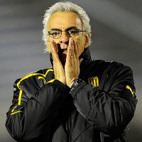 Jorge Fossati en el amistoso de presentación en pleno grito de indicación a los jugadores.