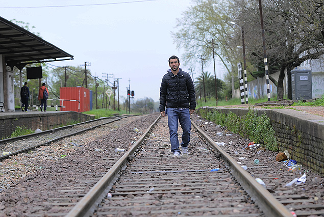 Juan Pablo Rodríguez en la estación Sayago; allí llegó desde el Reducto, el Racing Club de sus abuelos