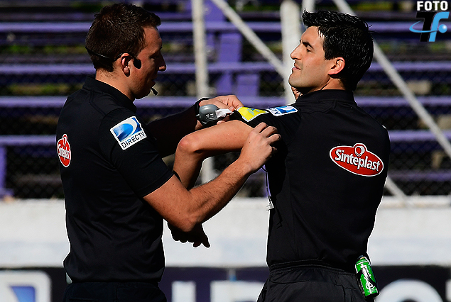 Leodan González con problemas de comunicación. No funcionó el intercomunicador y lo dejó en manos de Diego Riveiro, el cuarto árbitro.