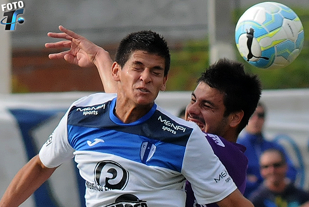 Facundo Barceló disiputa el balón por alto con Guillermo De Los Santos