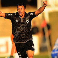 Leandro Sosa en el grito de gol de Danubio a la punta del Torneo Clausura.