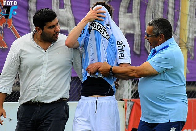 Felipe Klein no disimuló la bronca cuando salió de la cancha en el primer tiempo por el hombro dislocado. Joaquín Boghossian, delantero ex Cerro y Defensor Sporting, en el Estadio Luis Franzini.