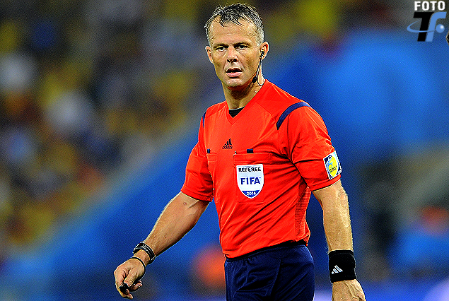 Björn Kuipers, árbitro de mal recuerdo para Uruguay… Condujo el partido de la despedida de Brasil 2014. Derrota 0:2 ante Colombia en el Estadio Maracaná de Río de Janeiro, por los octavos de final de la pasada Copa del Mundo.
