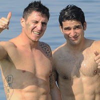 Cristian “Cebolla” Rodríguez y Nicolás Lodeiro son la imagen de la alegría en el emblemático Mar Muerto.
