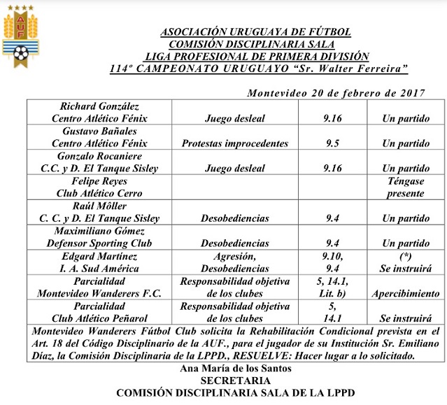 A continuación, el boletín conteniendo todas las decisiones de la Comisión Discplinaria: