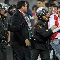En el partido clasificatorio para el Mundial de la FIFA Brasil 2014 entre Perú y Uruguay, disputado el pasado 6 de septiembre en Lima, los oficiales de partido dieron parte de una serie de graves incidentes por parte de los hinchas locales.