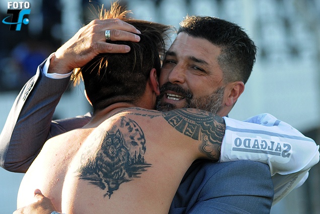 Leo Ramos en el abrazo con Joaquín Ardaiz después del tercer gol en la hora.