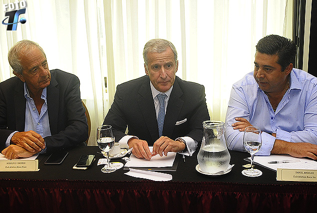 Rodolfo D'Onobrio, Juan Pedro Damiani, Daniel Angelici, presidentes de Boca Juniors, Peñarol y River Plate, respectivamente