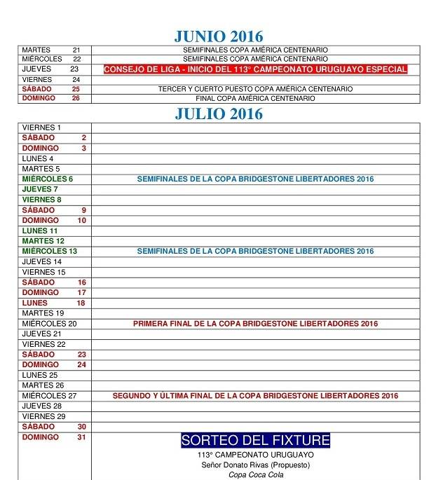 Los miembros de la Mesa explicarán a los delegados clubistas que es menester respetar esa fecha de inicio por razones de calendario. Jugando todos los fines de semana a partir de ese sábado 6 de agosto, y sin colocar etapas en los fines de semana previos a la disputa de cada partido de la selección en Montevideo por las Eliminatorias en los meses de septiembre, octubre y noviembre, la fase regular del Campeonato Uruguayo Especial culminará el domingo 4 de diciembre. La Mesa se reservará los domingos 11 y 18 de diciembre para las dos finales reglamentarias, ante la eventualidad de que se registre un empate en la primera posición al finalizar la fecha 15.