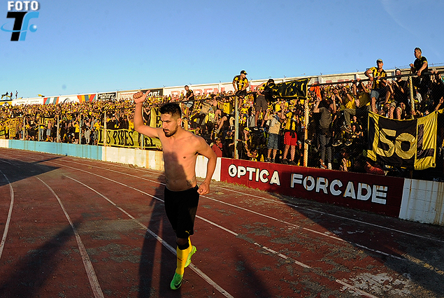 Copa… El Dr. Jorge Campomar, en representación de la Mesa Ejecutiva de Primera, fue el encargado de entregarle la Copa de campeón a Cristian Rodríguez. El capitán la recibió, la levantó de cara a la parcialidad aurinegra y junto a sus compañeros posó en fotografía para la historia.