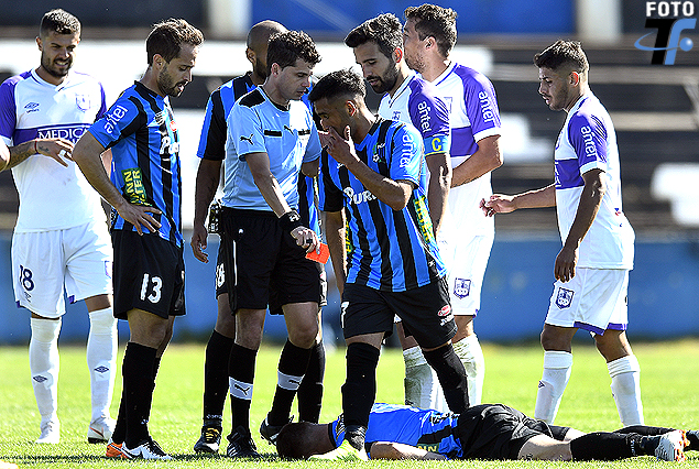 CALIENTE: La temperatura aumentó en el final del primer tiempo por la bronca de Defensor Sporting con el árbitro Andrés Cunha. Hubo reclamos, los entrenadores de los dos equipos calmaron la situación.