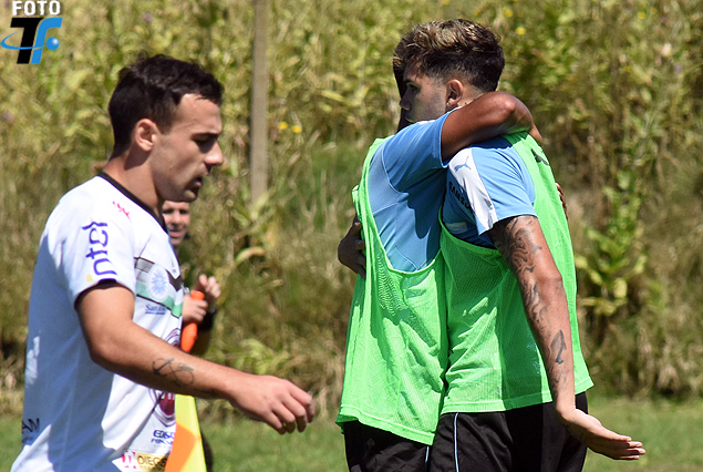 Mathías Laborda y Nicolás Schiappacasse en el abrazo de gol. La Sub 20 le ganó 4:0 a San José capital.
