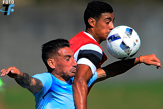 Angel Luna, de Cerro, y Carlos Benavídez, volante de la Selección, en el Complejo Celeste.