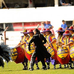 La Tangó espectacular: La comparsa Tangó y su brillante espectáculo en el entretiempo, como de costumbre en el Parque Palermo, con su formidable cuerda de tambores y toda su parafernalia.