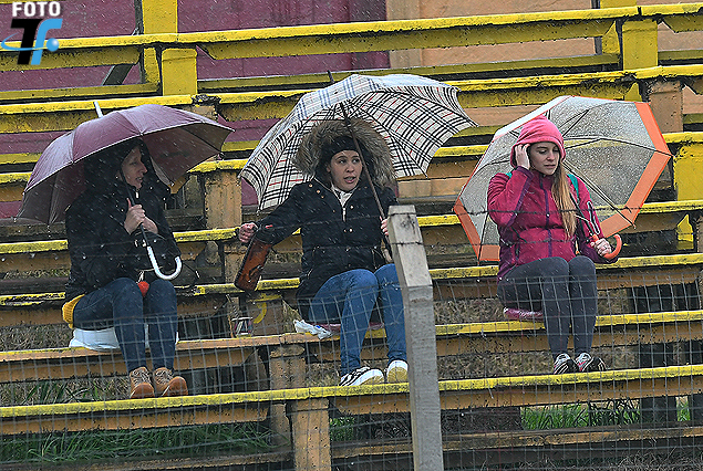 Las hinchas y el fútbol bajo lluvia