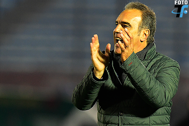 Martín Lasarte, entrenador de Nacional, grito y aplauso al equipo en el Estadio Centenario.