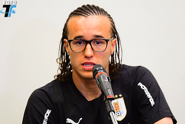 Diego Laxalt, lateral izquierdo de la Selección, el martes en conferencia de prensa.