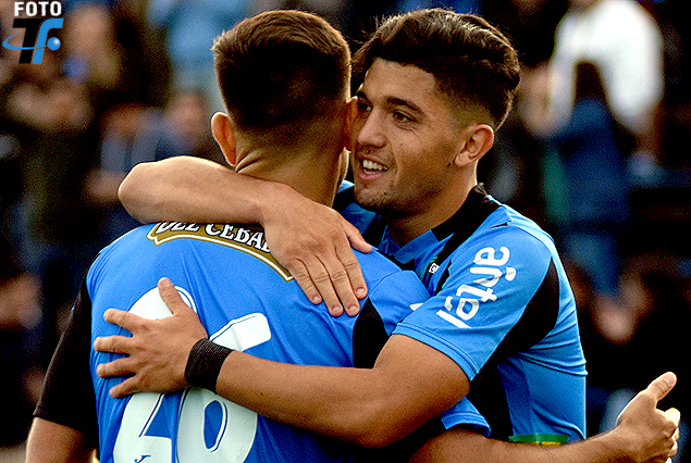 Nicolás Avecedo en el abrazo de gol con Federico Martínez, autor del primer tanto negriazul.
