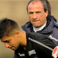 Eduardo Favaro, entrenador negriazul, en pleno entrenamiento en Lomas de Zamora.