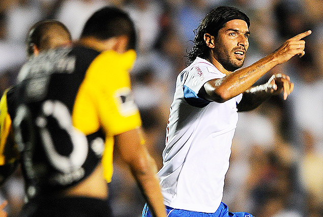 El "Loco" Abreu corre hacia el medio de la cancha, tras anotar el primer gol tricolor ante Barcelona.