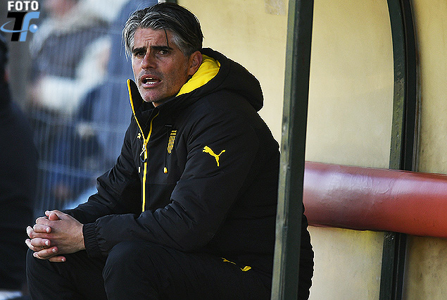 Diego López, entrenador de Peñarol, en el banco del Estadio Atilio Paiva de Rivera.