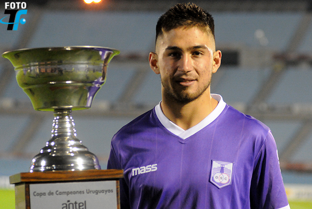 Pablo López, volante ofensivo de Defensor Sporting, con la Copa de Campeón.