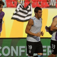 Diego Forlán, hoy en el banco, volvió a ser el jugador más aplaudido por los aficionados locales. El equipo… Martín Silva, Matías Aguirregaray, Andrés Scotti, Sebastián Coates, Alvaro Pereira, Diego Pérez, Walter Gargano, Sebastián Eguren, Gastón Ramírez, Nicolás Lodeiro y Abel Hernández.