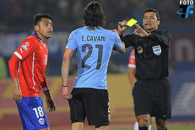 Sandro Meira Ricci advertido por el juez de línea mostró tarjeta amarilla a ambos futbolistas. A Edinson Cavani la segunda en el juego, lo que originó su expulsión.