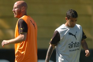 El regenerativo de los titulares, con la supervisión del Prof. Pablo Placeres, presentó salvedades. Marcelo Zalayeta y Fabián Estoyanoff hicieron ejercicios en bicicletas instaladas a la derecha del ingreso a los vestuarios, sobre la cancha N°1.