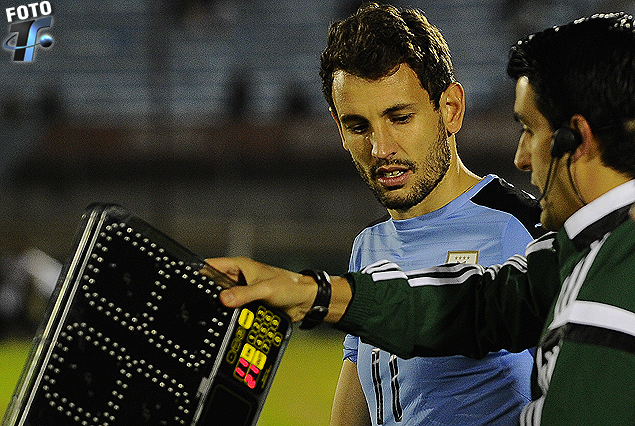 Capitán… El centenario Maxi Pereira dejó la cancha en el minuto 70 y el brazalete en manos de Alvaro Pereira. “Palito”, capitán por primera vez.