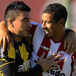 LOS EX: Jorge “Japo” Rodríguez, en Peñarol, y Diego “Zurdo” Rodríguez, en River Plate, vidas cruzadas… Los dos jugaron contra sus ex equipos. Abrazo antes del partido y con los conocidos del rival de turno.