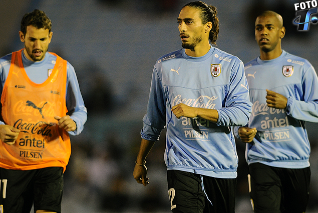 Los jugadores uruguayos luciendo buzos celestes con chalecos naranjas y los colombianos con camperas blancas de abrigo, ya se encuentran en el campo de juego realizando los clásicos ejercicios precompetitivos.