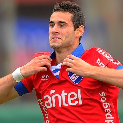 Gastón Pereiro en el festejo del gol de Nacional a los cuarenta segundos del primer tiempo.