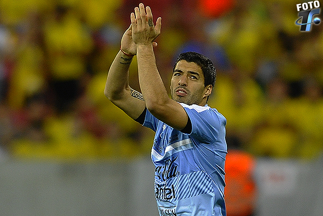 Luis Suárez retribuye con aplausos el apoyo de los hinchas uruguayos.