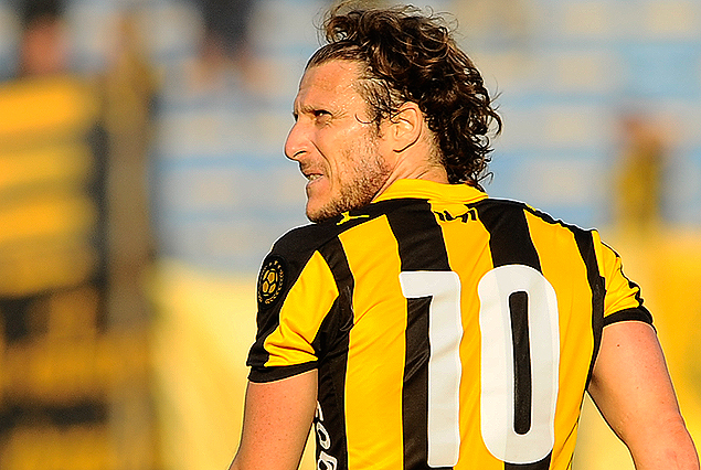 Diez… Diego Forlán por primera vez a nivel oficial con la camiseta de Peñarol en el Estadio Centenario. El “10” mostró toda su clase.