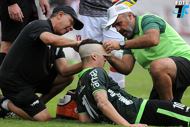 Maicol Cabrera asistido por la sanidad por un corte en la cabeza.