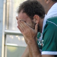 Damián Malrechaufe, sentido, en el banco de Racing.