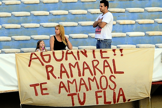 Apoyo… “Aguante!! R. Amaral, te amamos tu familia”, pancarta que portaron los familiares del delantero de la selección uruguaya y apareció en la tribuna América.