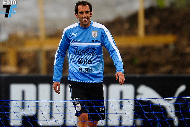 Diego Godín en el entrenamiento del lunes en el Complejo Celeste.