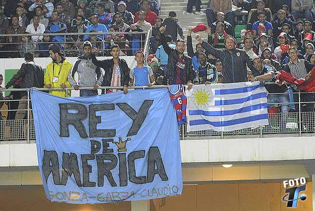 Uruguayos… Tres uruguayos sobresalieron entre los 55.000 marroquíes que colmaron el Grand Stade D’ Agadir. Se ubicaron en la segunda bandeja de la que colgaron el pabellón nacional y una enorme bandera con la leyenda “Rey de América”. Los tres compatriotas fueron los únicos que se marcharon con gran una sonrisa del moderno y espectacular escenario marroquí.