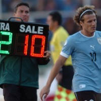 Diego Forlán es sustituido. El capitán deja la cancha.