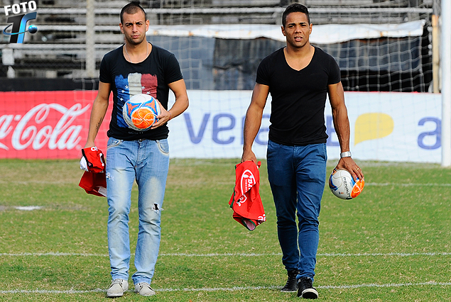Maximiliano Russo, goleador de Villa Teresa y Raúl Tarragona, artillero de Boston River, en la cancha del Parque Viera.
