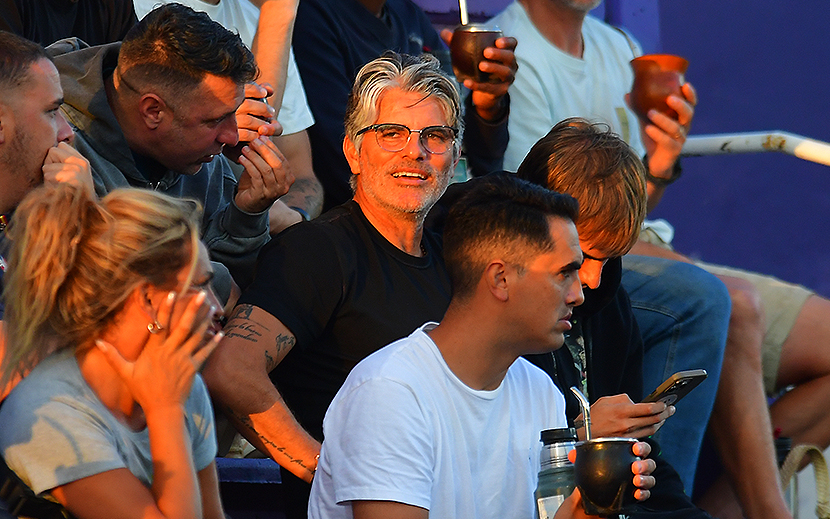 Diego "Memo" López recibe la luz del atardecer mientras mira el partido con la parcialidad local en el Estadio Franzini.