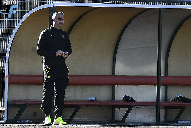 Michele Fini, el técnico italiano asistente de Diego López, habilitado y por primera vez en el banco de Peñarol el domingo en el Estadio Atilio Paiva de Rivera.
