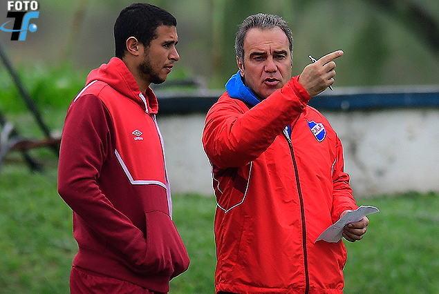 Diego Arismendi y el técnico Martín Lasarte el viernes en Los Céspedes apuntando a River antes del clásico.