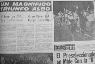 Contratapa de "El Diario" del domingo de 1966 cuando Nacional obtuvo el título de Campeón Uruguayo. El equipo posaba como Independiente de Avellaneda. De pie y en fila. Desde la izquierda: Manicera, Calleros, Hugo Fernández, Emilio Alvarez, Mujica, Montero Castillo, Viera, Ramos, Oyarbide, Curia y Urruzmendi.