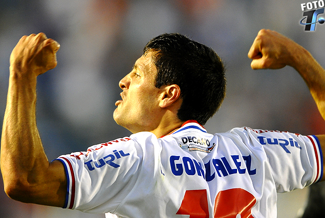 "Nacho" González en el festejo tricolor apretando los puños por el gran triunfo.