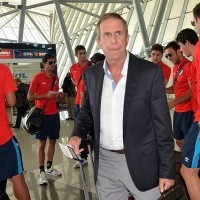 Maxi Calzada, Rafael García, “Chino” Recoba, Richard Porta y Renato César en el aeropuerto previo a la partida con destino a Bolivia.