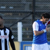 Sebastián Abreu festeja el segundo gol de Nacional en la última visita tricolor al Viera en el Clausura pasado, donde ganó 2 a 1 (02-06-12). Santiago Martínez, no tiene consuelo.